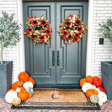 Fall Table Decor: Please note whether you would like a white or orange pumpkin and your faux floral color scheme. Faux florals with a real pumpkin help the look last all season. 15" tall by 18" wide although sizes may vary slightly due to the pumpkin size.